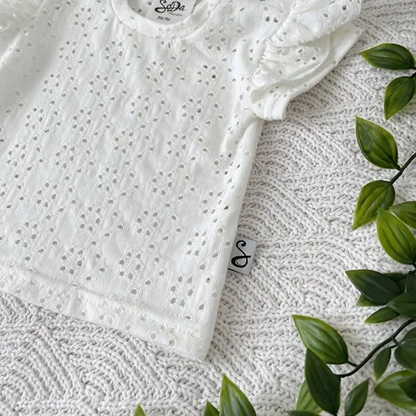 Ruffle shirt Embroidery korte mouwen